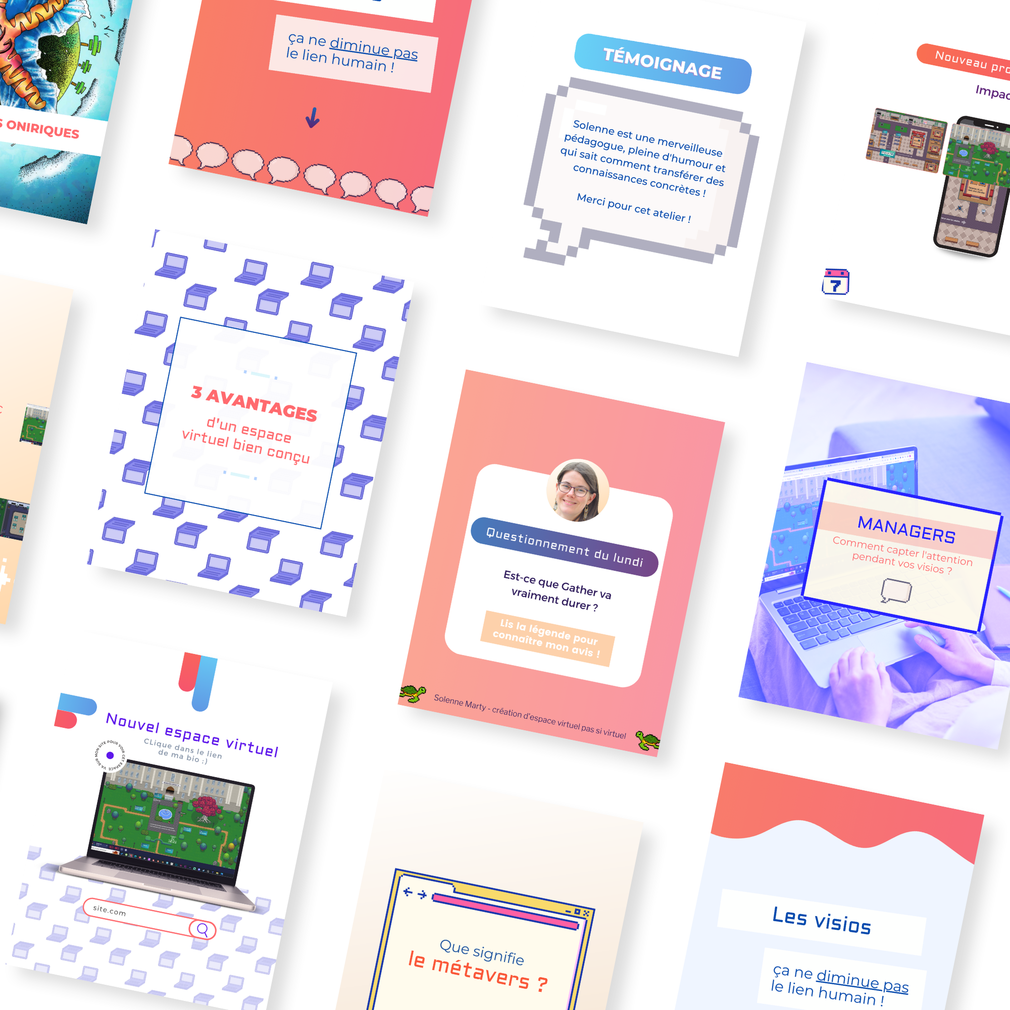 Ensuite, elle m’a accompagné avec patience, pédagogie et bienveillance pour des templates de communication pour les réseaux sociaux, la refonte de mon logo, et de précieux conseils sur les maquettes de mon site web. Et j'ai compris comment m'approprier les codes de cette identité pour être autonome.
