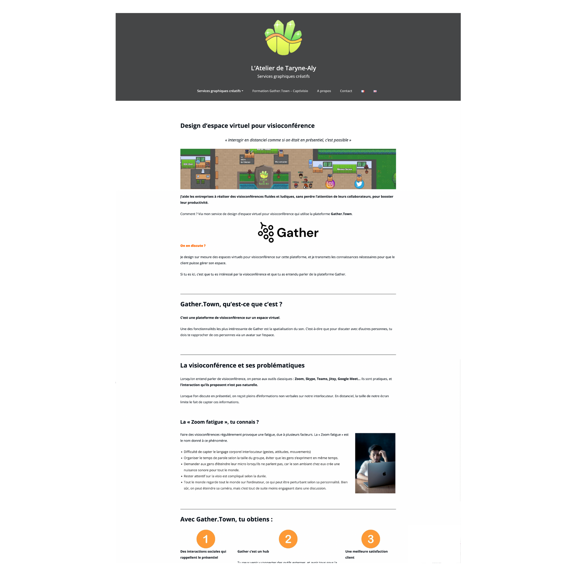 - Pour clarifier ses services et que sa cible se sente cercernée, il allait falloir changer de nom : en effet, son site était sous le nom de ‘l’atelier de Taryne-Aly’, ce qui n’est pas gênant lorsque l’on fait de la création mais elle était en train de développer sa cible entreprise, cheffe de projet + sa casquette de formatrice dans des écoles, et cela n’allait pas forcément être parlant pour eux, et cela pouvait faire penser à un blog personnel au lieu de rassurer.